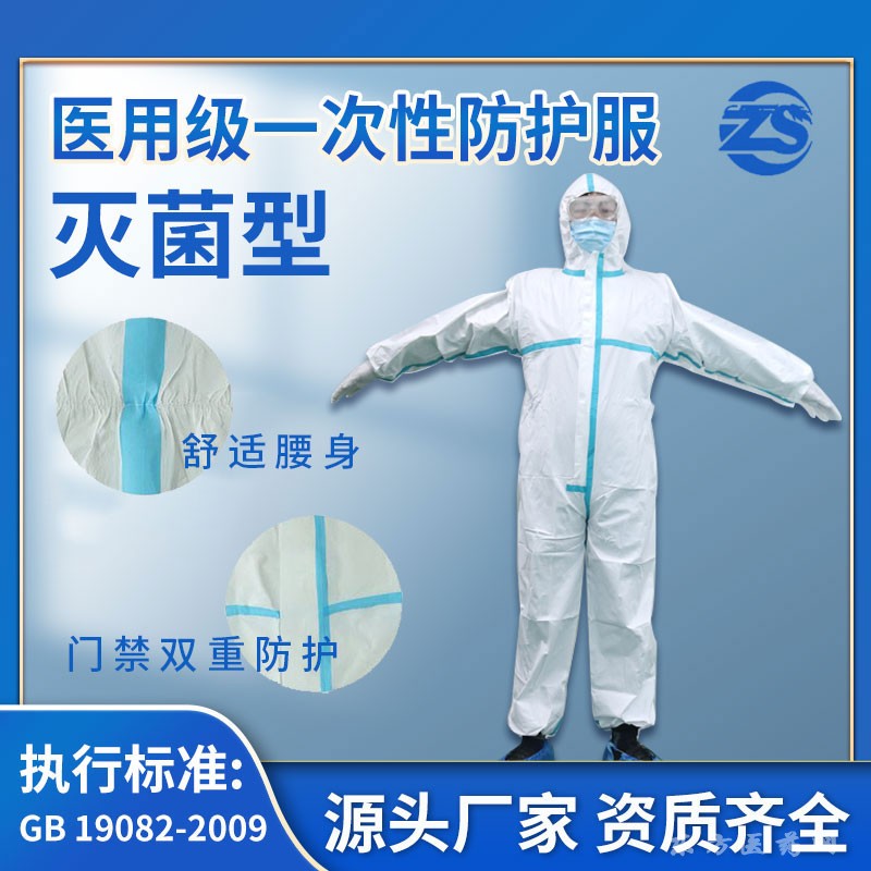 | 注意事项 | 本产品为无菌、一次性使用产品,有效期三年; 本产品只限于一次性使用,打开包装后应立即使用,使用时间不超过24小时,用后应焚烧处理; 穿着前如发现破损或拉链、缝线等任何部位有不妥之处,则不可使用; 防护服应避免长时间与化学物质接触。 本产品无阻燃性 |